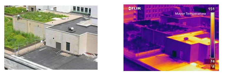 Edificio con y sin cubierta verde                                           Diferencia de temperatura de ambos edificios